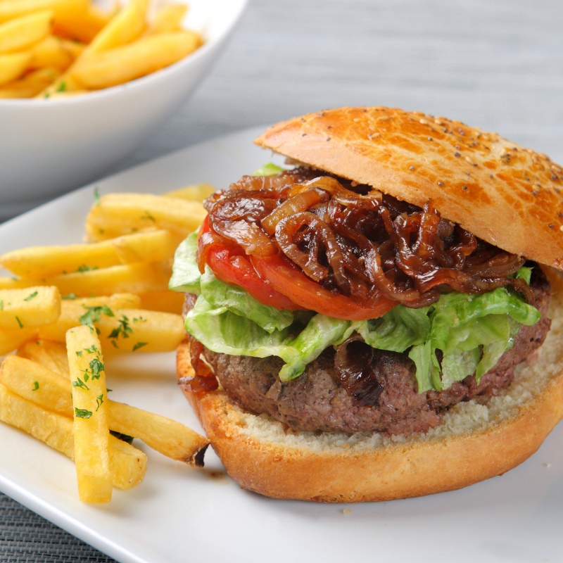 Una hamburguesa con sabor a bar de siempre: carne sabrosa, pan crujiente y todos los ingredientes que te harán volver. Casera, generosa y sin artificios.